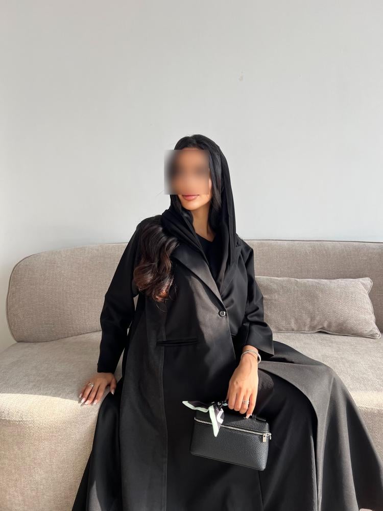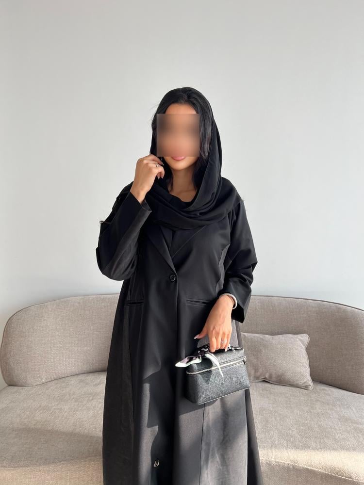 عباية بأسلوب البليزر العصري، مع ياقة وأكمام منظمة، تعطيك مظهر رسمي وأنيق بقماش كتان