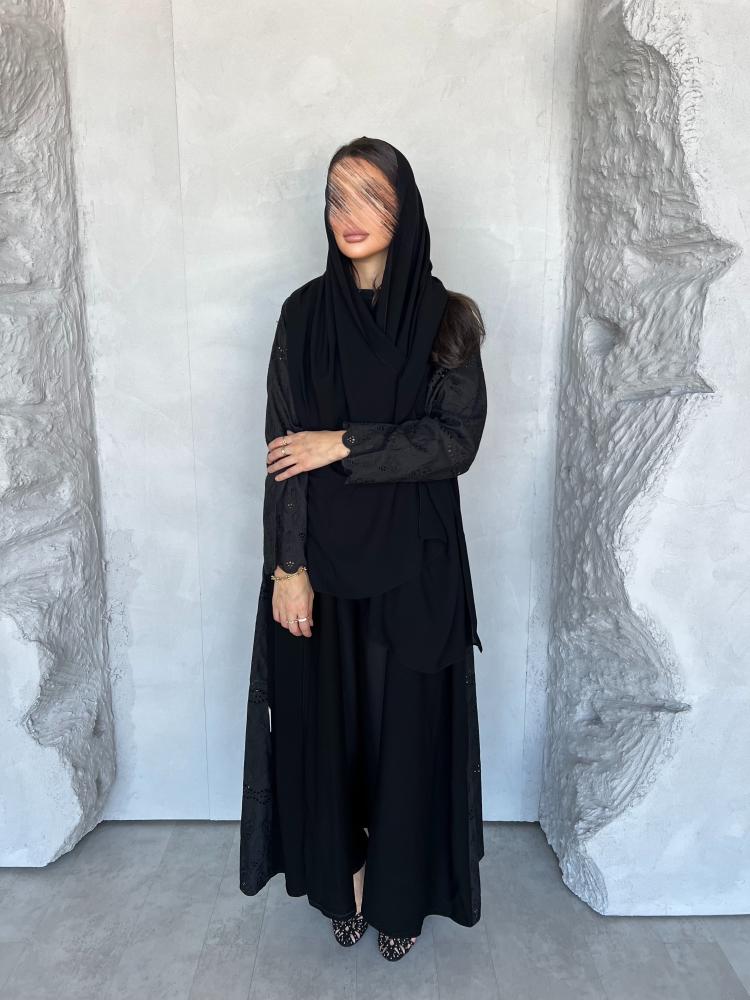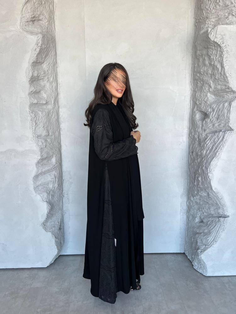 مزينة بلمسات من قماش الروكاما الفاخر على الأكمام وأطراف العباية لتمنحك إطلالة فاخرة .